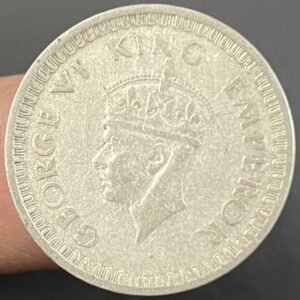 ₹1,500.00British India Half Rupee – George VI 1944 Silver Coin Lahore Mint