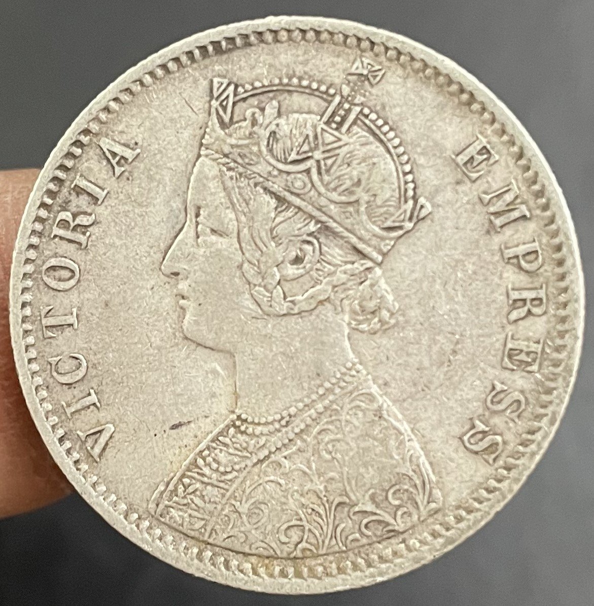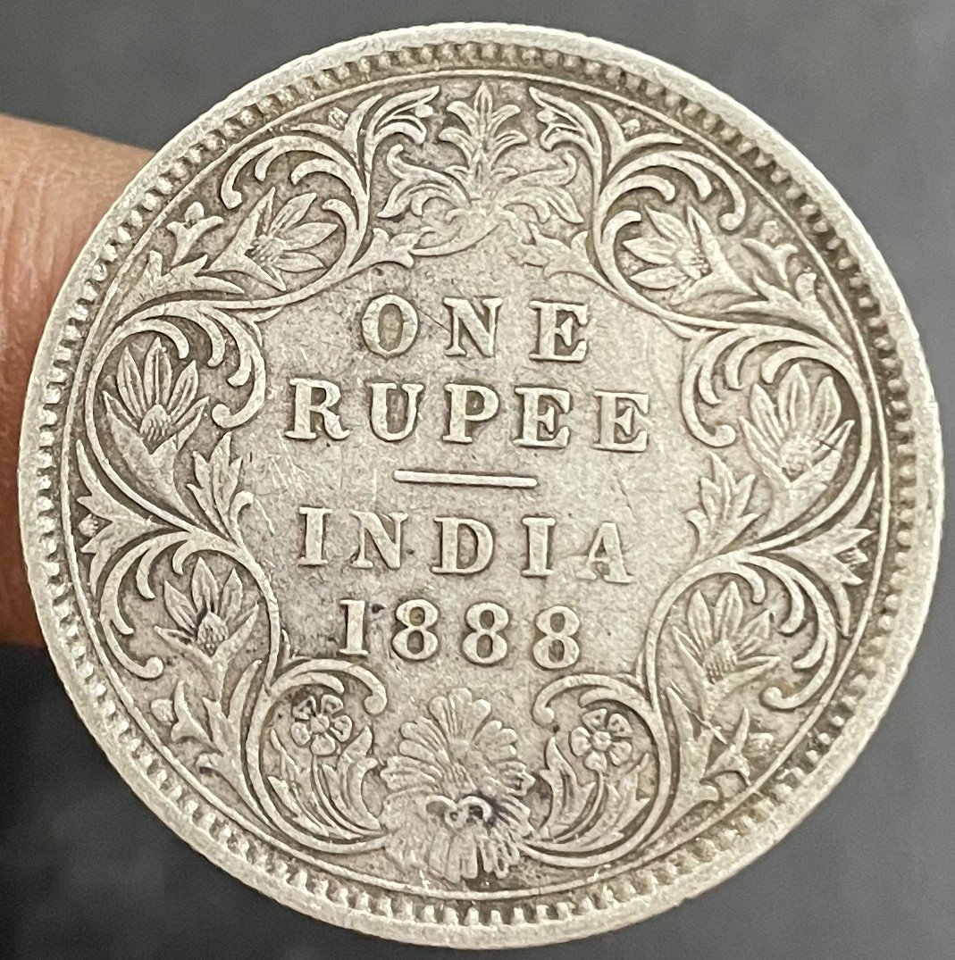 1888 BRITISH INDIA COIN QUEEN VICTORIA QV 1RE COIN CALCUTTA MINT C Incused RARE DATE