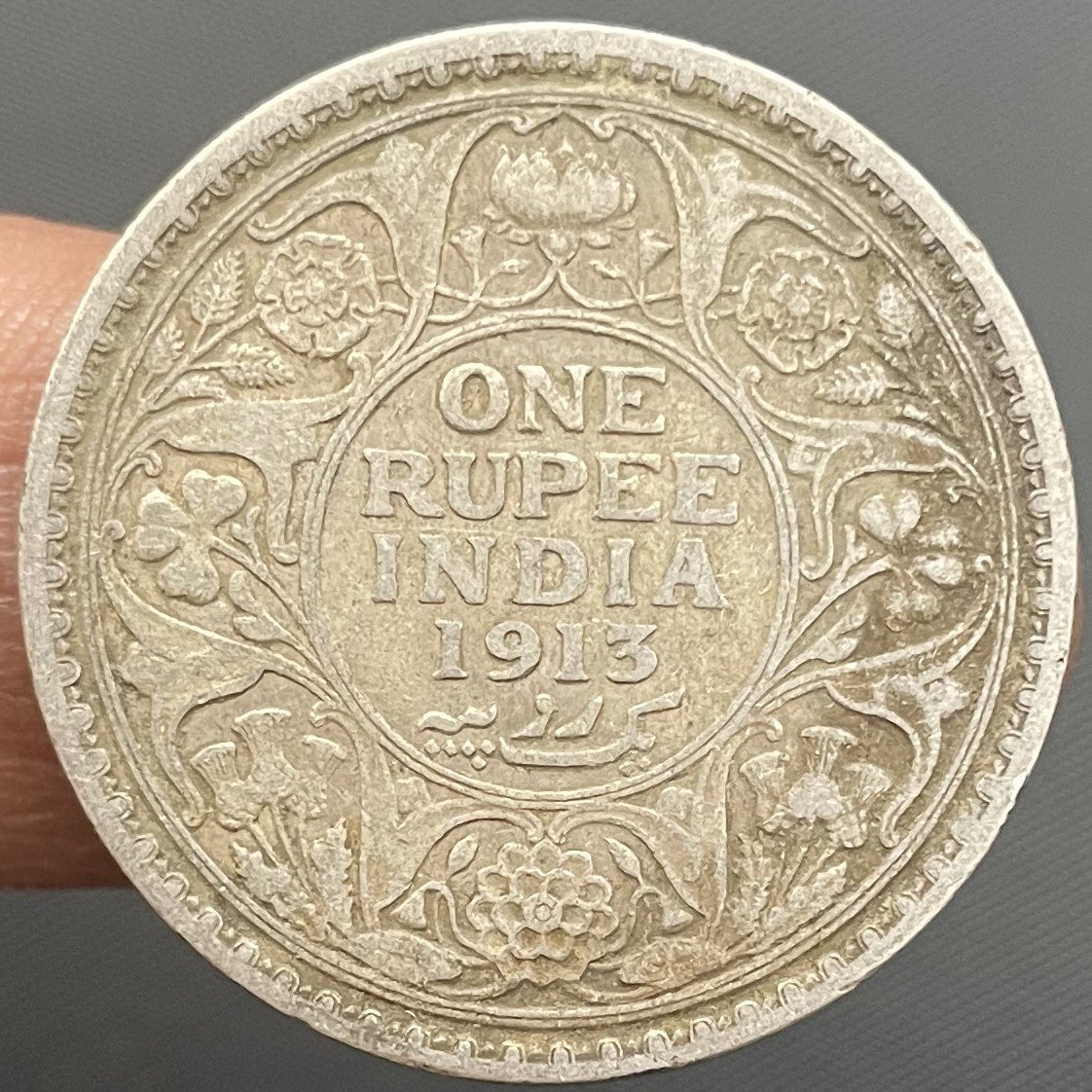 British India 1 Rupee – King George V 1913 Silver Coin Calcutta Mint