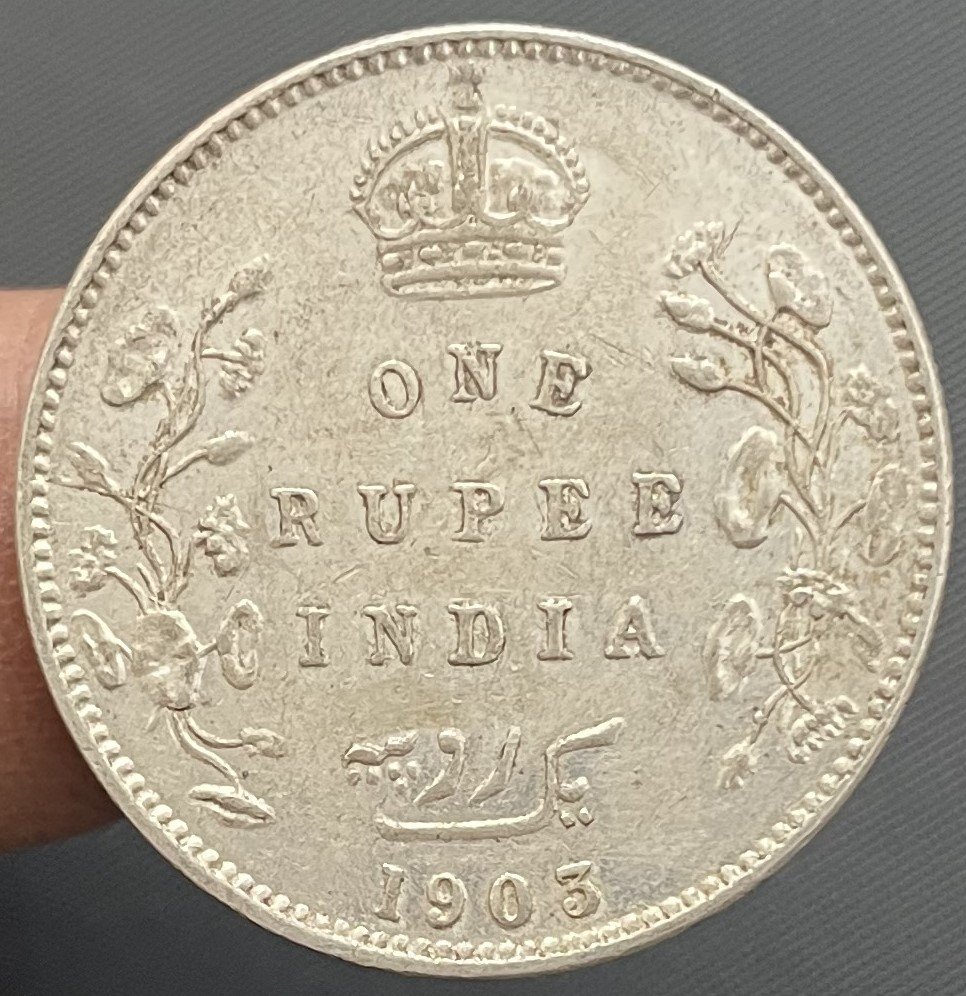 British India 1 Rupee Re 1903 King Edward VII Bombay Mint Coin with B Incuse and Dot