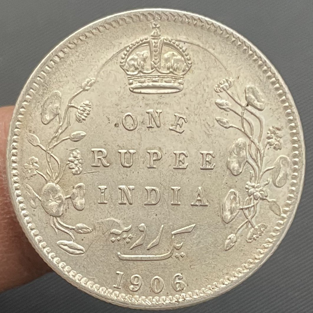 British India 1 Rupee Re 1906 King Edward VII Calcutta Mint Coin With Ghost Image At Reverse