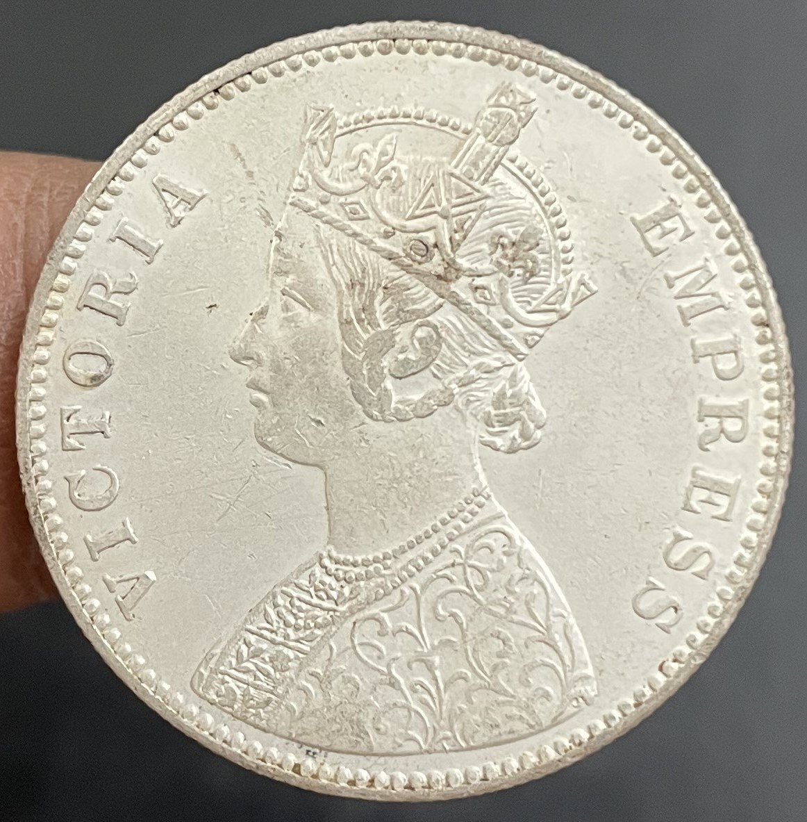 British India 1 Rupee – Victoria Empress 1883 Silver Coin Bombay Mint B Raised