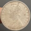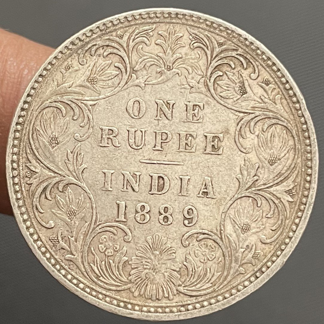 British India 1 Rupee – Victoria Empress 1889 Silver Coin Bombay Mint B Incused at top flower