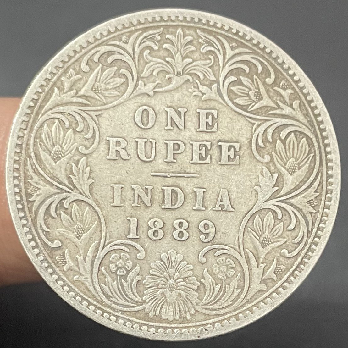 British India 1 Rupee – Victoria Empress 1889 Silver Coin Bombay Mint B Incused