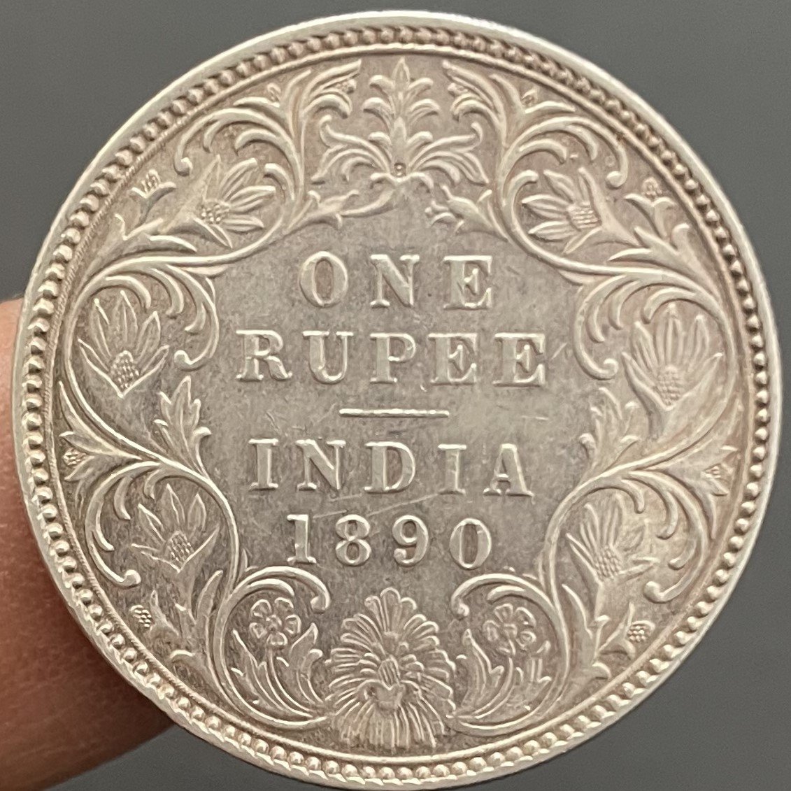 British India 1 Rupee - Victoria Empress 1890 Silver Coin Bombay Mint B Incused at top flower
