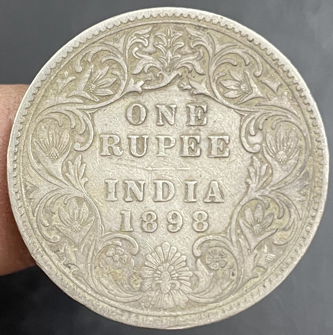 British India 1 Rupee – Victoria Empress 1898 Silver Coin Bombay Mint B Incused as Mint Mark