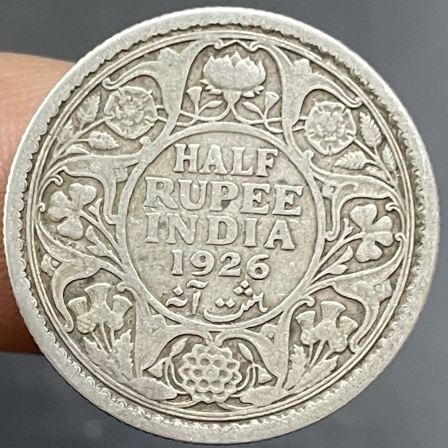 British India Half Rupee – King George V KG V 1926 Silver Coin Calcutta Mint