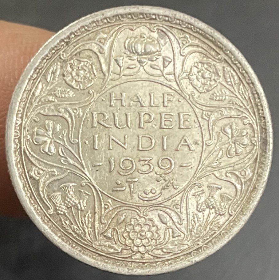 British India Half Rupee – King George VI KG VI 1939 Silver Coin Bombay Mint