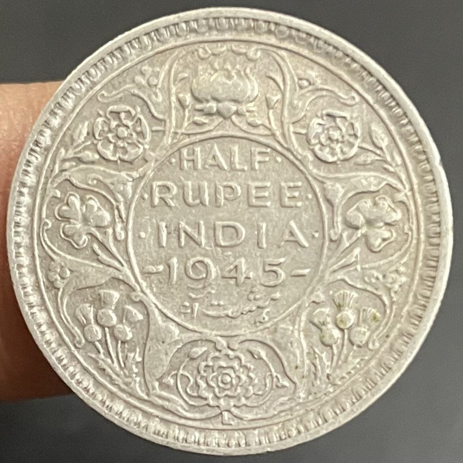 British India Half Rupee – King George VI KG VI 1945 Silver Coin LAHORE Mint