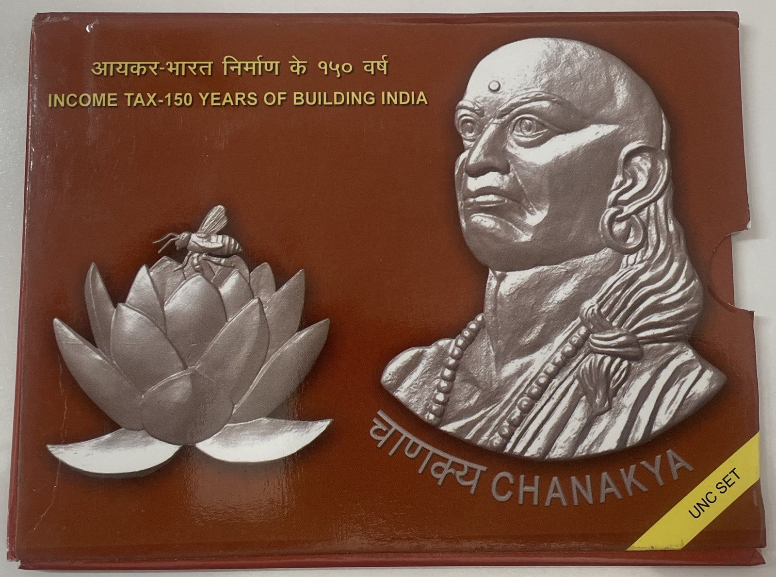 INCOME TAX 150 YEARS OF BUILDING INDIA CHANAKYA UNC SET KOLKATA MINT OF 2 COINS RS 150&5