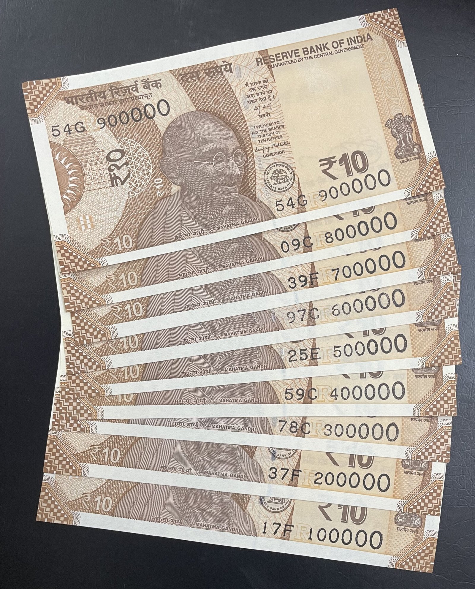 RS 10 FANCY NUMBER SET OF 9 NOTES 100000-900000 SIGNED SANJAY MALHOTRA 2025 RARE